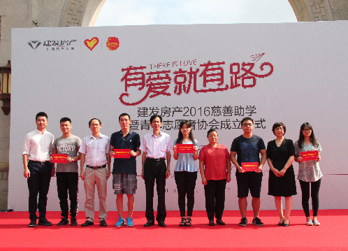 8月19日上午,“有爱就有路”建发房产2016慈善助学暨青年志愿者协会成立仪式在中山公园南门广场举行。建发房地产集团副总经理张云霞,厦门市慈善总会副会长巫秀美、黄金锭,团市委常委、宣传部部长赵秋喜,建发房产团委书记刘强以及来自建发房产各单位的志愿者代表和受助学生代表等110多人共同参与了本次活动。