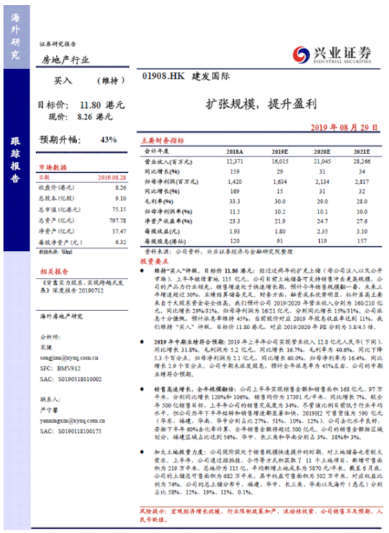作为新晋的深港通标的股,建发国际近年业绩亮眼。2019年上半年,建发国际实现认购191亿元人民币,同比增长170%;签约销售金额168亿元,按年增长120%;实现归母净利润约2.1亿元,同比增长60%。