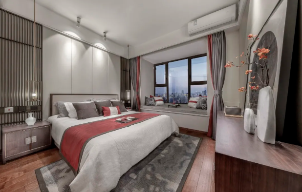 当然,约143㎡户型四房,两厅两卫的人性化设计,也是贴心到不行。主卧套房设计,步入式衣帽间,干湿分离,南向大飘窗,一应俱全。7.3米阔景阳台,尽览中庭园林到外围的双公园哟~