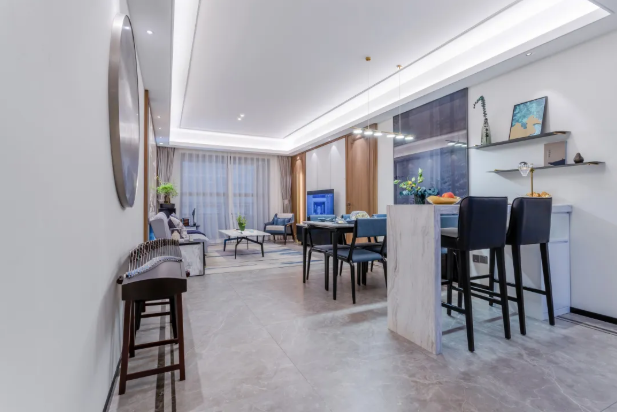 约30㎡ 超大连续客厅,疏朗开阔的空间,南北通透,清风阳光肆意出入,无尽四季风光、生活雅韵在此晕染,给予家人健康生态的生活环境。