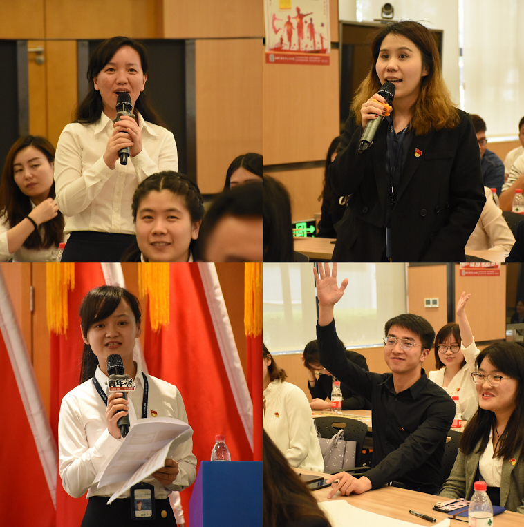 随后,“悦读会”主题分享活动正式开始。本次分享选取了《平易近人—习近平的语言力量》一书。该书辑录了中共十八大以来,习近平总书记在各种场合发表的重要讲话中富有特色的引文引言。四位到场的高管站在企业发展的角度,摘取了书中四个章节为大家引读。随后,八名青年党员代表先后现身说法,以见闻有感、微党课等方式进行分享。高管们的引读铿锵有力,青年们的分享感人肺腑,活动现场掌声不断。与会人员深刻地感受到了武汉国有地产企业党员干部和青年员工们的蓬勃朝气和昂扬姿态。