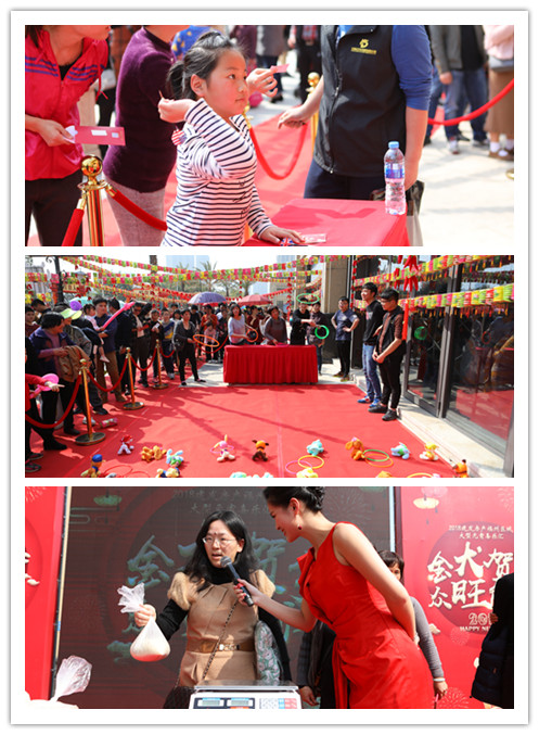 活动设置了红包墙、传统糖画、创意拍照、汪汪派粮、汪汪手艺、福汪猜谜、萌汪福圈、旺犬献礼等八大游园主题。福汪猜谜是元宵必不可少的元素,大家积极思考,共同探讨,体验着猜灯谜带来的乐趣和收获奖品的喜悦。萌汪福圈和红包墙:祝愿大家不仅能套住财富好礼,更把福气和好运领进门。创意拍照:打造全家福,将精彩瞬间刻画成永恒的回忆。汪汪派粮:小小年纪早当家,轻松拎起一袋米,便能知其轻重。汪汪手艺——糖画、捏面人、棉花糖、还有随处可见的小狗气球吸引了不少老少业主,现场处处呈现着欢声笑语,洋溢着浓浓年味。此外,我们准备了整点微信赛马游戏,引爆全场,带您HI翻这个元宵!